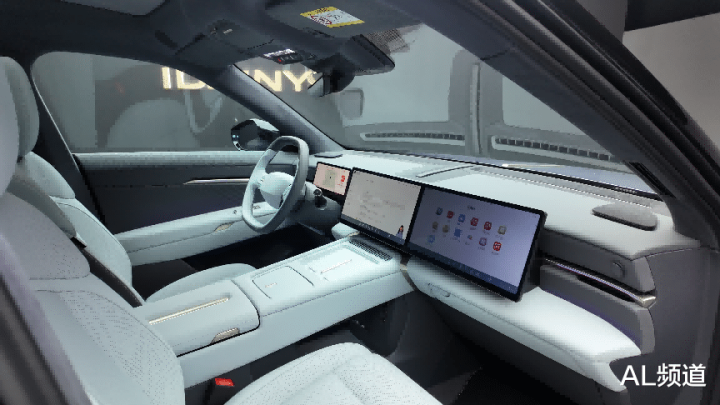 眼前一共有三块屏幕,天然副驾文娱屏在其他世界车型上也有出现,然而布局的现象并不相通,三块屏齐是悬浮式的,算力则来自一颗8295P的芯片。