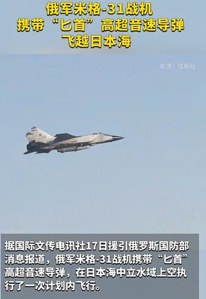 3月17日,俄罗斯国防部抛出重磅音信:捎带**“匕首”高妙音速导弹**的数架米格-31战机,在日本海中立水域上空完成磋磨内遨游,技能还演练了空中加油科目 。俄方反复强调,系数遨游严格效用海外空域使用限定 。