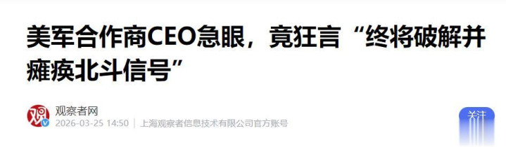 好意思国Sandbox AQ科技公司CEO杰克·希达里,看成好意思军长久谐和方,公开声称好意思军有才能破解并澈底瘫痪中国北斗系统。