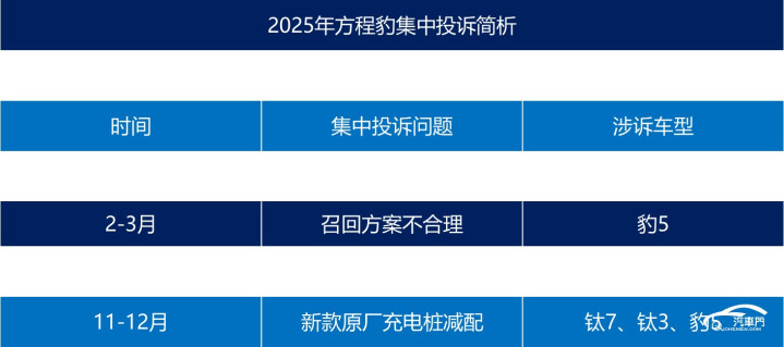 方程豹2025年度两次投诉指数波动主要由两次连合投诉引起。
