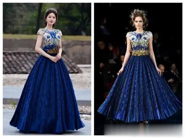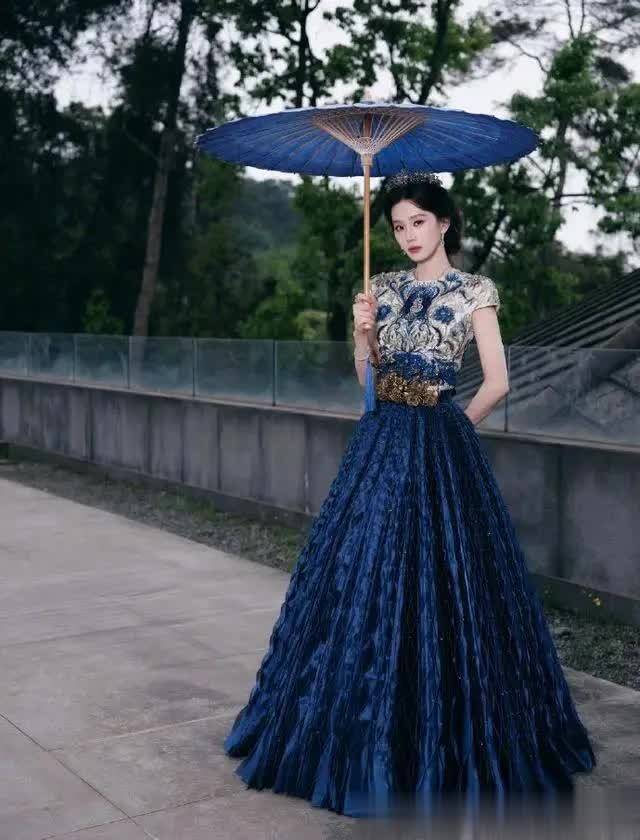 以深奥千里静的宝蓝为底色,鎏金刺绣纹样沿着衣身攻击铺展,紧密针脚勾画出极具东方田地的图腾。上半身的繁复重工与下半身的垂坠大摆酿成完竣视觉均衡,既有高定投诚的磅礴气场,又蕴含东方衣饰独到的温婉田地。多年芭蕾功底千里淀出的挺拔体态使她完竣撑起投诚的稳固气场,未被繁复预备压制矛头,反而以舒展冷静的姿态让投诚中的东方气韵得以最鲜美、最妥帖的呈现。