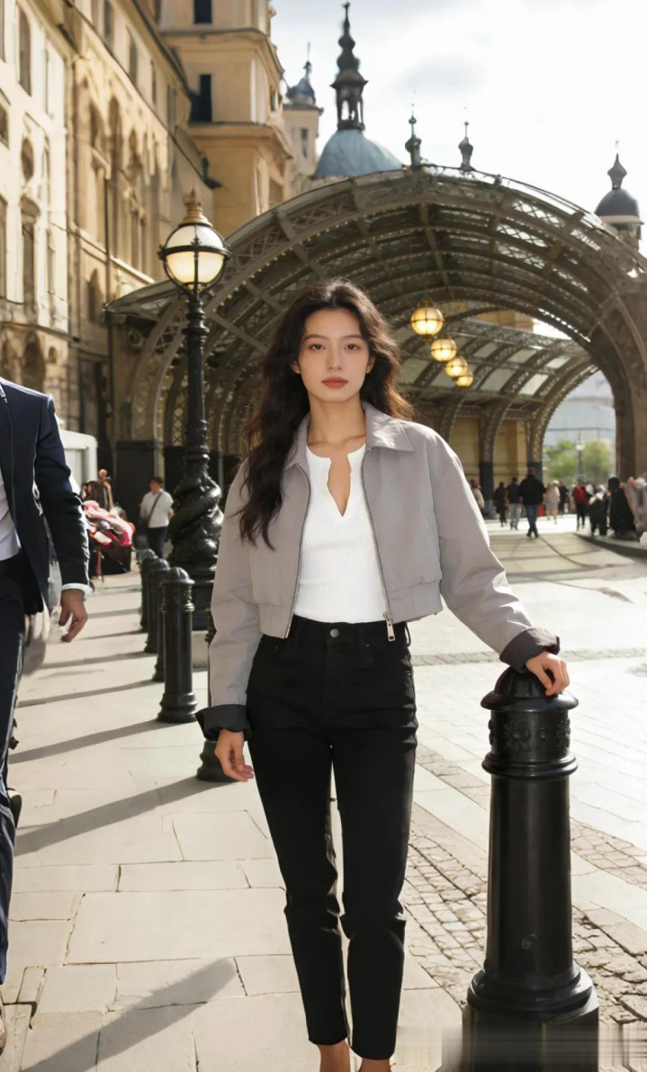 换条阔腿裤是慵懒感,配牛仔裤即是涌现姑娘姐。
