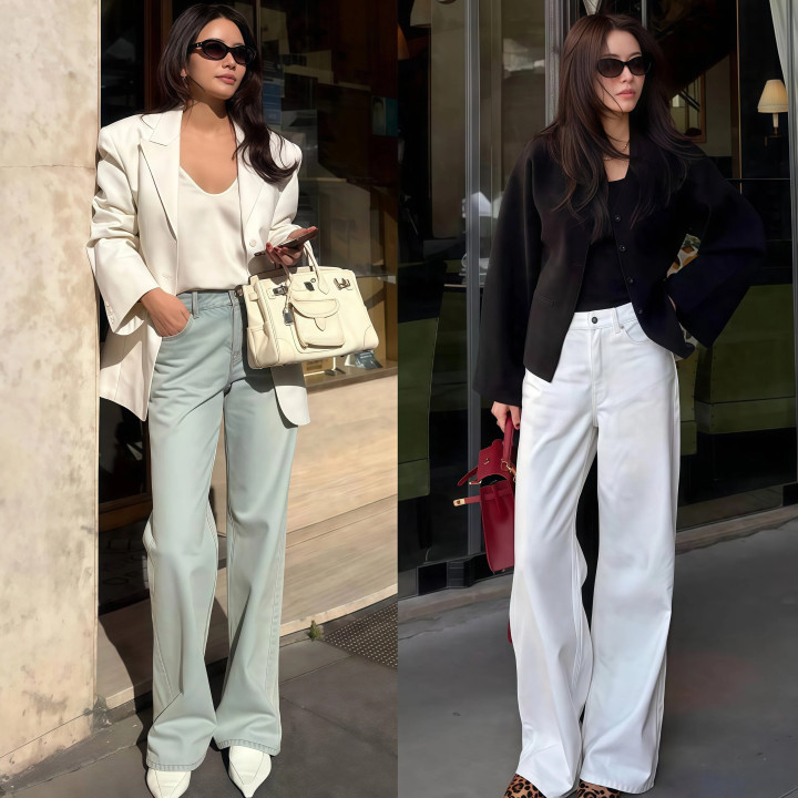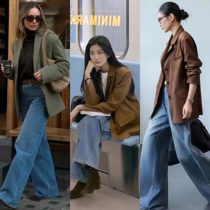 决议二:西装外衣+牛仔阔腿裤,平常上班两不误