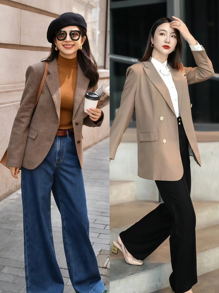 决议三:西装外衣+毛呢阔腿裤,高档优雅感up