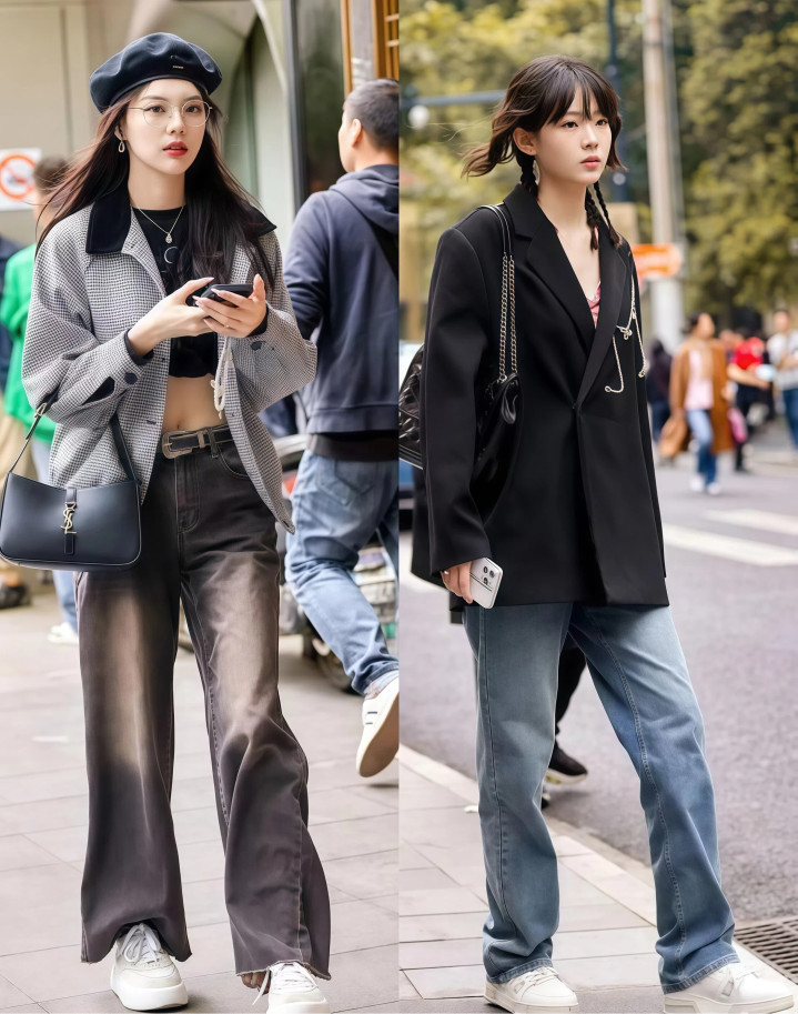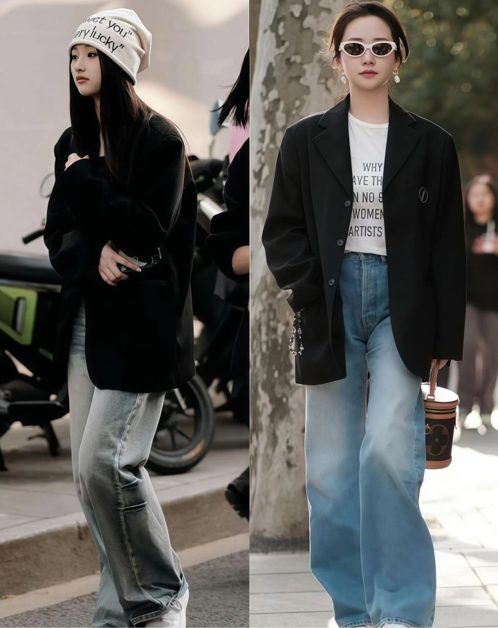 对于心爱赋闲风多少许的姐妹,西装+牛仔阔腿裤,才是你的本命穿搭。赋闲的牛仔裤,搭配上利落的西装,两件单品组合在一齐刚柔并济,非论是上班仍是平常外出,穿它皆很合适,一套搭配惩处两种场景。