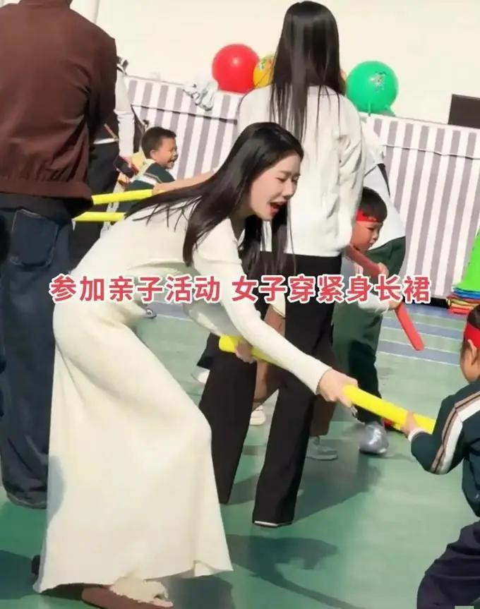 犹如少女下凡,亲子现场却成为别东谈主眼中的显眼包。
