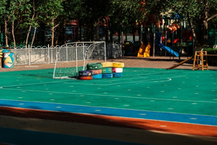 宝妈身穿紧身长裙,脚踩厚底拖鞋现身孩子校园操场,