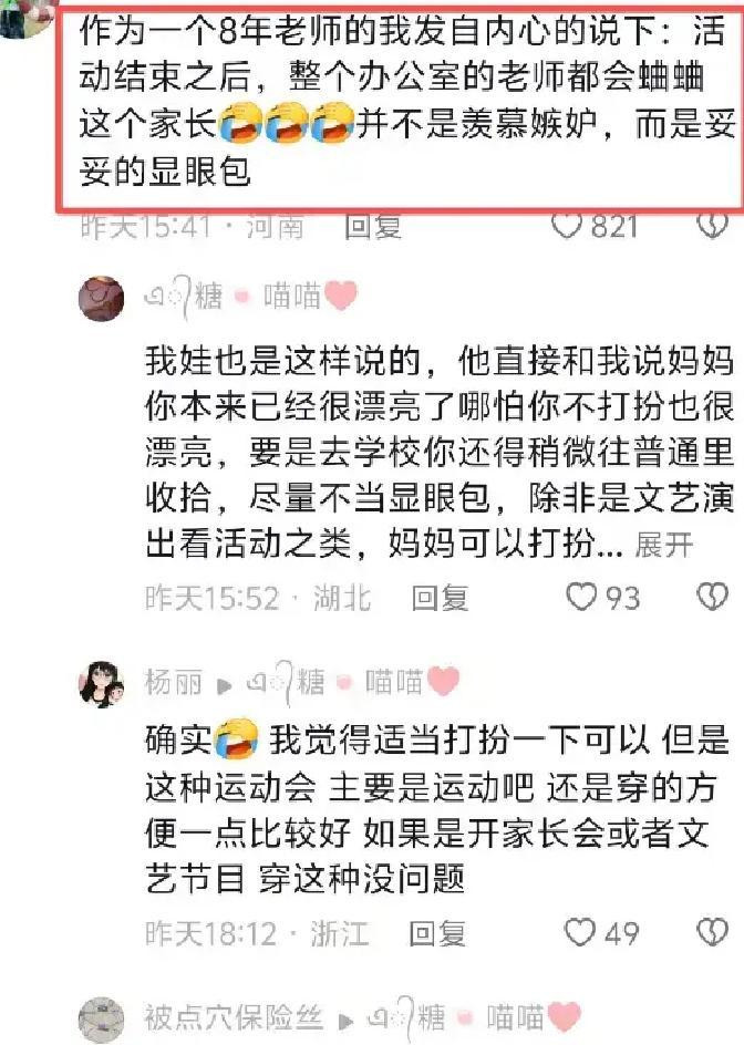 在小编看来,这位宝妈爱好意思莫得错,错就错在选错了地点,正所谓场地分歧,致力于白搭,我方所谓的好意思却成了开阔家长和淳厚眼中的显眼包。