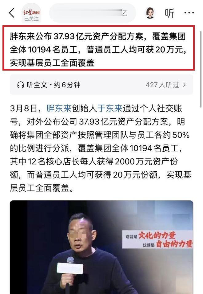 37.93 亿里,于东来我方只占省略5%,剩下 95% 全部分给团队和职工。