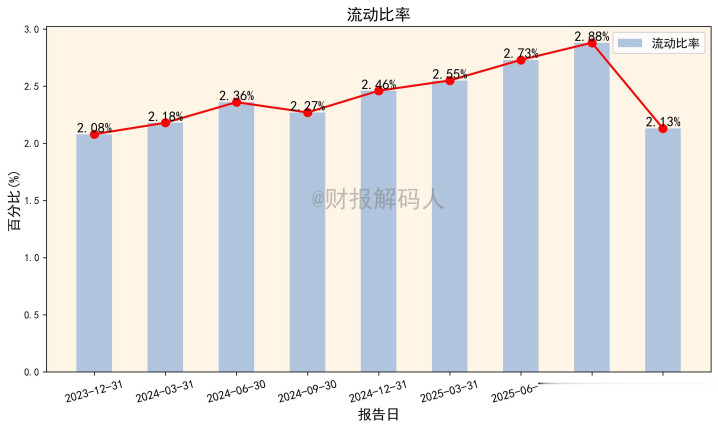 固然较年内高点有所回落,但仍高于频频的安全次第(流动比率>2,速动比率>1)。
