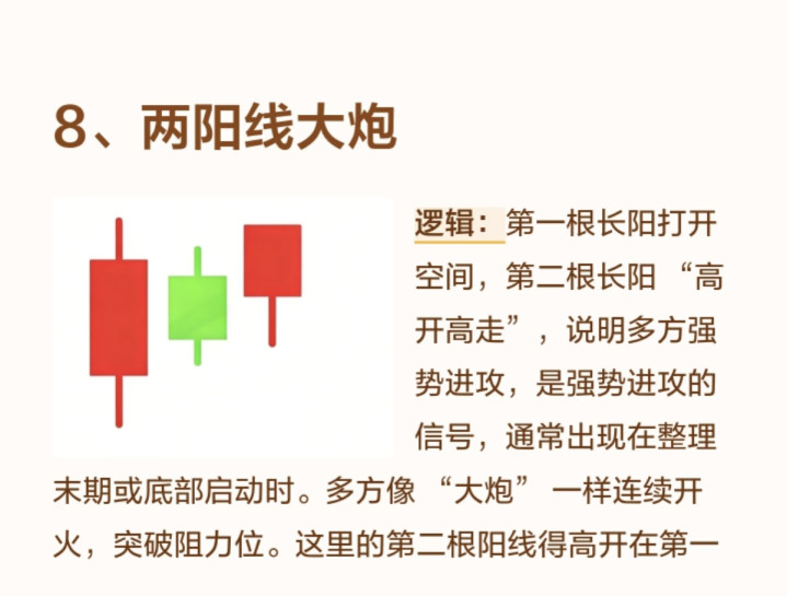 8. 勾通高开大阳线(俗称“两阳线大炮”)