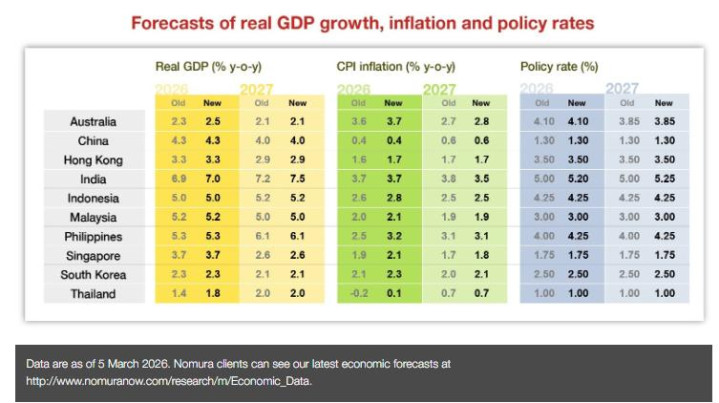 此外,现时较低的通胀基数也提供了一定的缓冲。咱们瞻望,像菲律宾(油价每上升10%,通胀传导效应上升0.5个百分点)和韩国(0.3个百分点)这么奉行市集化燃油价钱的国度,通胀传导效应会更高。若是油价握续上升,并因输送/货运资本和化肥价钱上升而更泛泛地波及食物和其他大批商品,咱们瞻望通胀风险将组成更大的挟制。