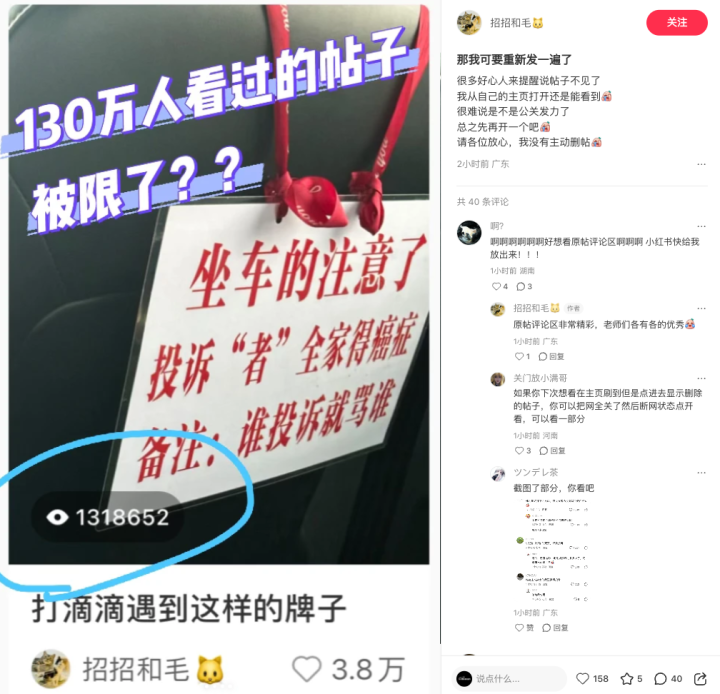2026年3月26日,小红书网友“招招和毛”发文称,我方使用滴滴特惠打车,司机竟在副驾驶位置吊挂挂牌,以阴恶话语口角乘客。