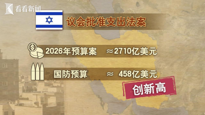 就在今天,以色列议会还通过了总数超2700亿好意思元的支拨法案,边界为以色列史上最大,其中仅国防预算就达到了创记录的458亿好意思元左右。