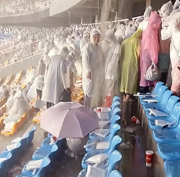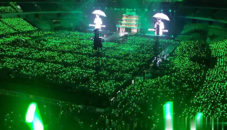 看台区瞻念众自愿大开手机闪光灯,在雨幕中织成一派摇曳星海。
