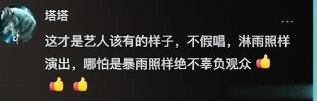 “这才是艺东说念主该有的边幅,不假唱,淋雨照样献技,哪怕是暴雨照样毫不亏负瞻念众。”