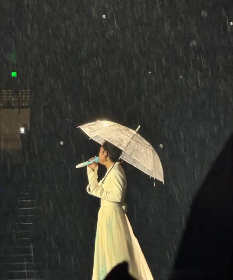 不异的,他也有屡次雨中开唱、全程不打伞的经验。