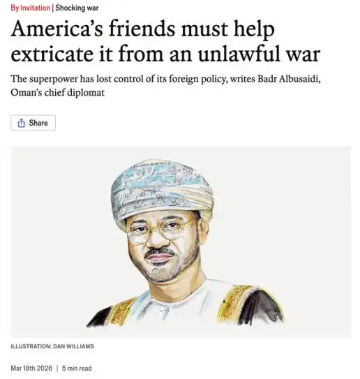 但是也恰是这个局内东说念主,却在搏斗爆发以后,在白宫死鸭子插嗫,约束强调这是一场很有必要的搏斗的时候,说出了真话。阿曼的酬酢大臣径直在国际媒体上发文,径直点出,这不是好意思国的搏斗,好意思国还是失去了我方的酬酢掌控权。他就差径直说出来,好意思国的酬酢当今被以色列放胆了。