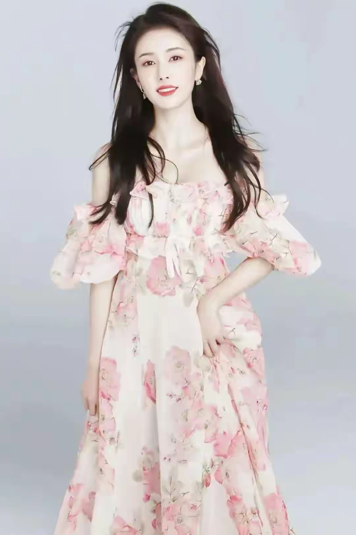 滚球app中国官方网站 白鹿一袭淡粉色碎花连衣裙, 显白显嫩显气质