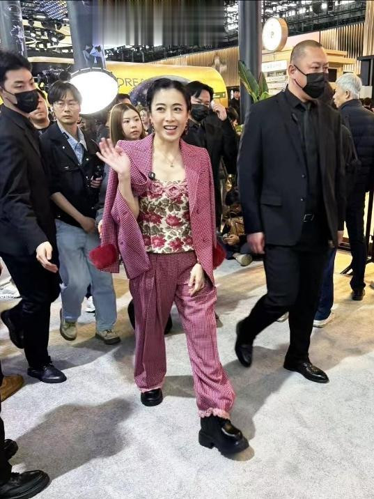 穿着打扮前锋靓丽,妆容细巧,漂亮又有气质,气象也特殊好,一边走一边笑着跟东说念主们打呼唤,自信而又安宁,上位者的姿态拿捏得特殊到位。