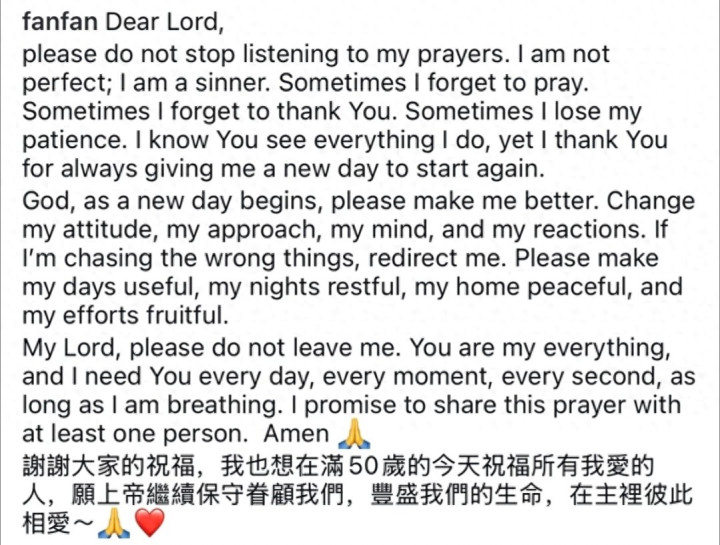 3月18日,关于范玮琪来说,是一个相称的日子,因为这天是她50岁的寿辰。她选拔和家东说念主一齐庆祝,并在酬酢平台上共享了动态。从字里行间不错感受到她的欢喜与感德之情。