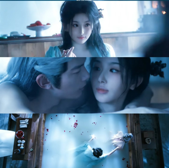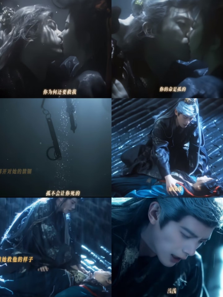 浴池那场极致拉扯的戏中,他阻止的手势强势无比,可微微胆寒的睫毛,却裸露了爱而不得的气馁与脆弱。