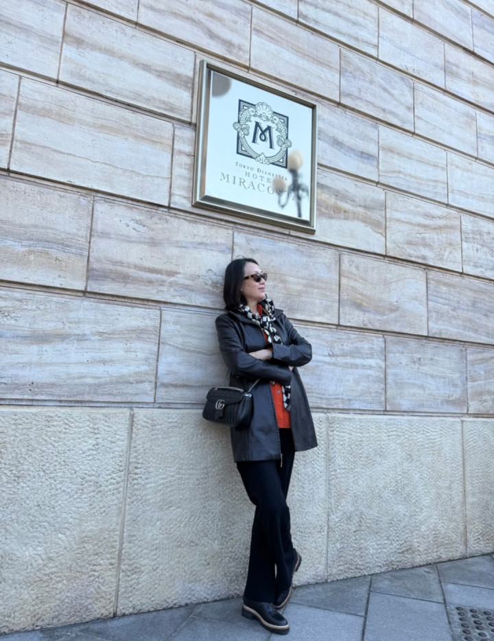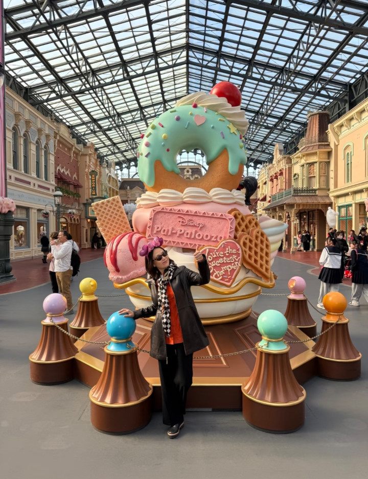 看配景可以知谈,她去日本迪士尼打卡了,还在Pal-Palooza项当今拍照迷恋。她戴着可儿的发箍,侧着身子,竖起了大拇指,脸上飘溢着兴隆的笑貌。