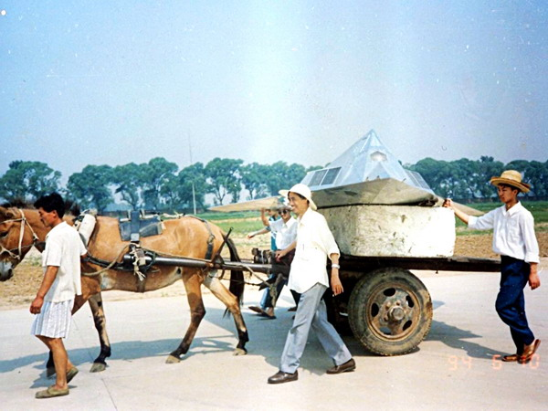 20世纪90年代中期,黄培康团队用马车运载老师劝诱