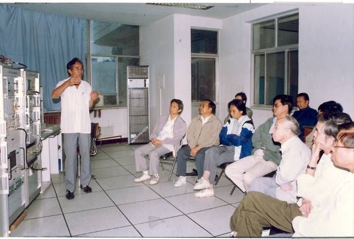 黄培康(左二)在实验室指导学生