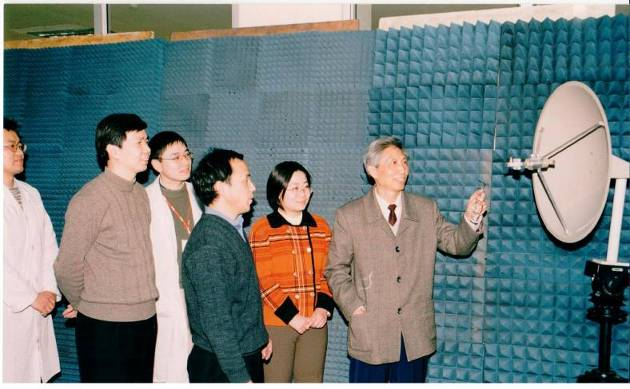 黄培康(右一)指导科研东谈主员开展谋划