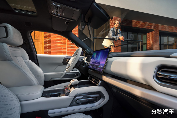 竖立赤忱:全系标配前排座椅透风加热、双层隔音玻璃、电子儿童锁等,四驱版罕见升级副驾座椅挂牵 + 腿托。