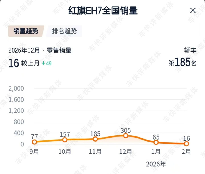 特地是本年2月,红旗EH7销量更是创下了新低,只卖出了16辆车。销量如斯之差,红旗EH7的问题出在哪?