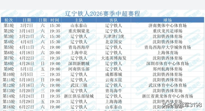 滚球app中国官方网站 2026赛季中超, 辽宁铁东谈主上半赛季一线队大名单及赛程。