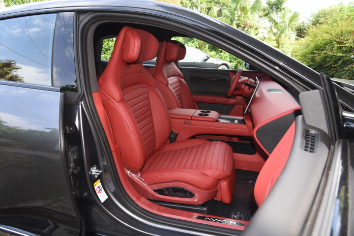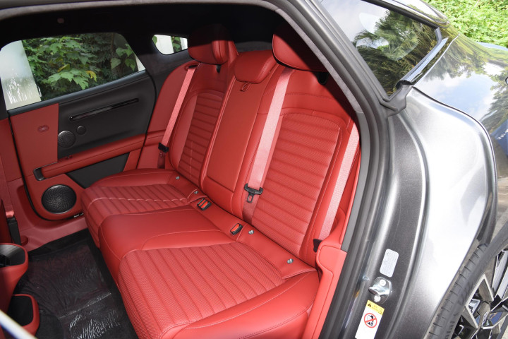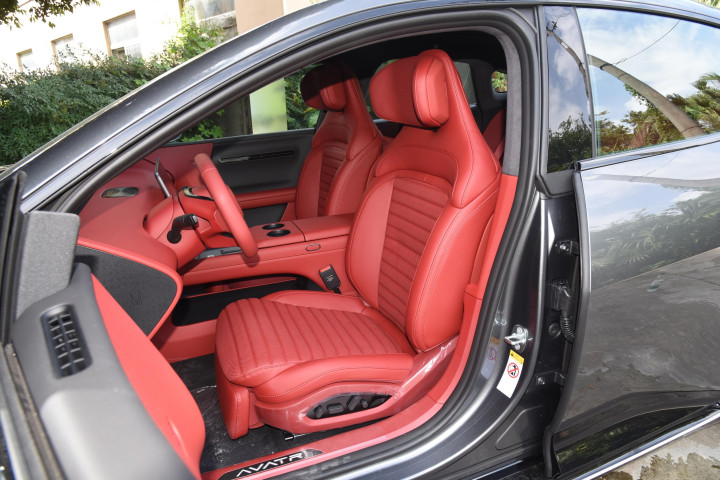光好意思瞻念弗成,还得能装、得振作。我专门找了一位身高180cm的一又友来当“东说念主体尺子”实测一下空间。让他坐进前排,把座椅协调到一个比拟圭臬的驾驶姿态后,头部空间八成还有一拳摆布的余量,完全莫得那种压抑感,视线也很机动。前排座椅用的是Nappa真皮材质,触感细密,况且是零重力蓄意,电动协调、加热、透风、推拿这些功能一应俱全。念念象一下,放工累了在车里开个推拿,或者冬天上车提前预热座椅,这种舒罢了关于资料驾驶或者日常通勤来说,确切是刚需。