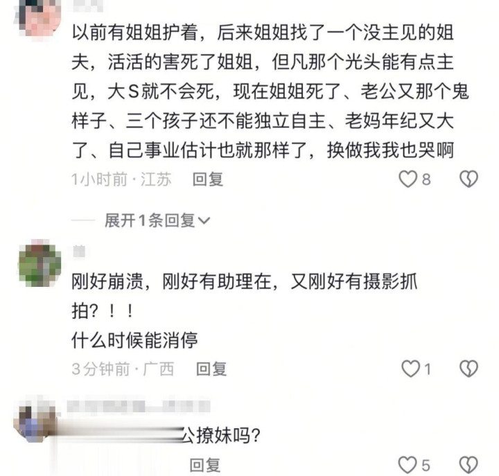 这一年多里,小S阅历了停工、复工,既要护理老大的母亲,又要兼顾行状与家庭,还要靠近外界对于她破费姐姐、侵占遗产的质疑,哪怕屡次解释,也难以平息统共声息。